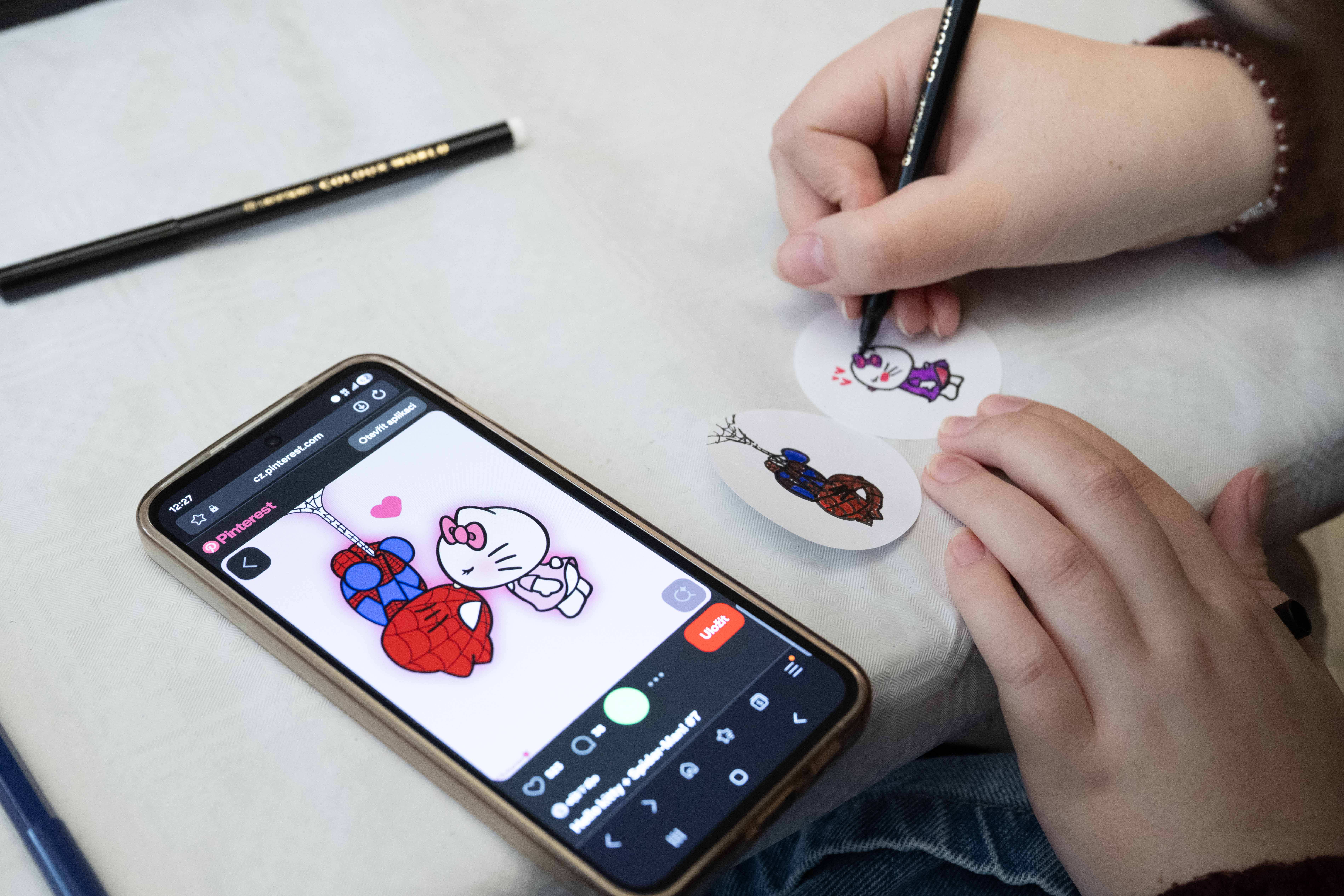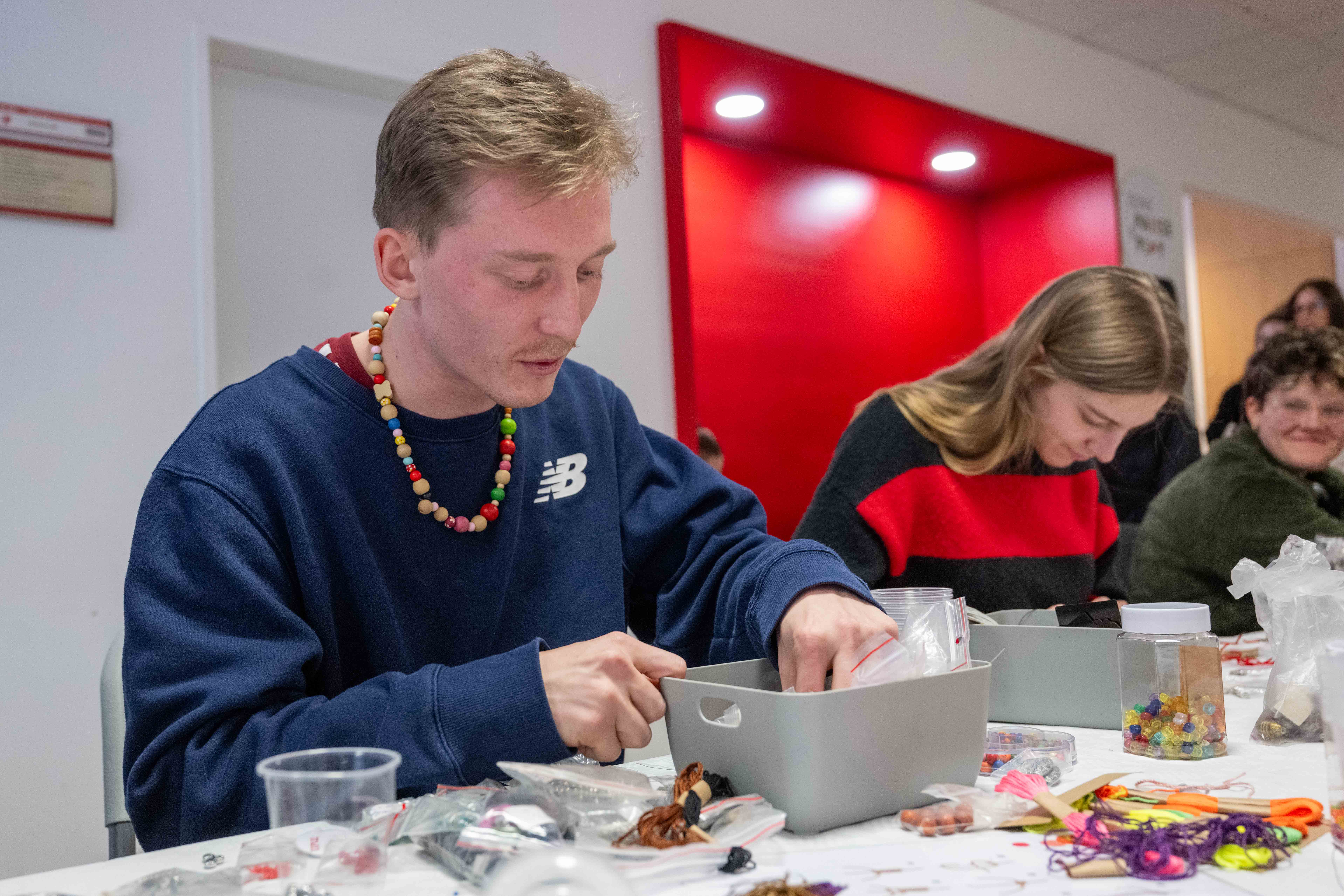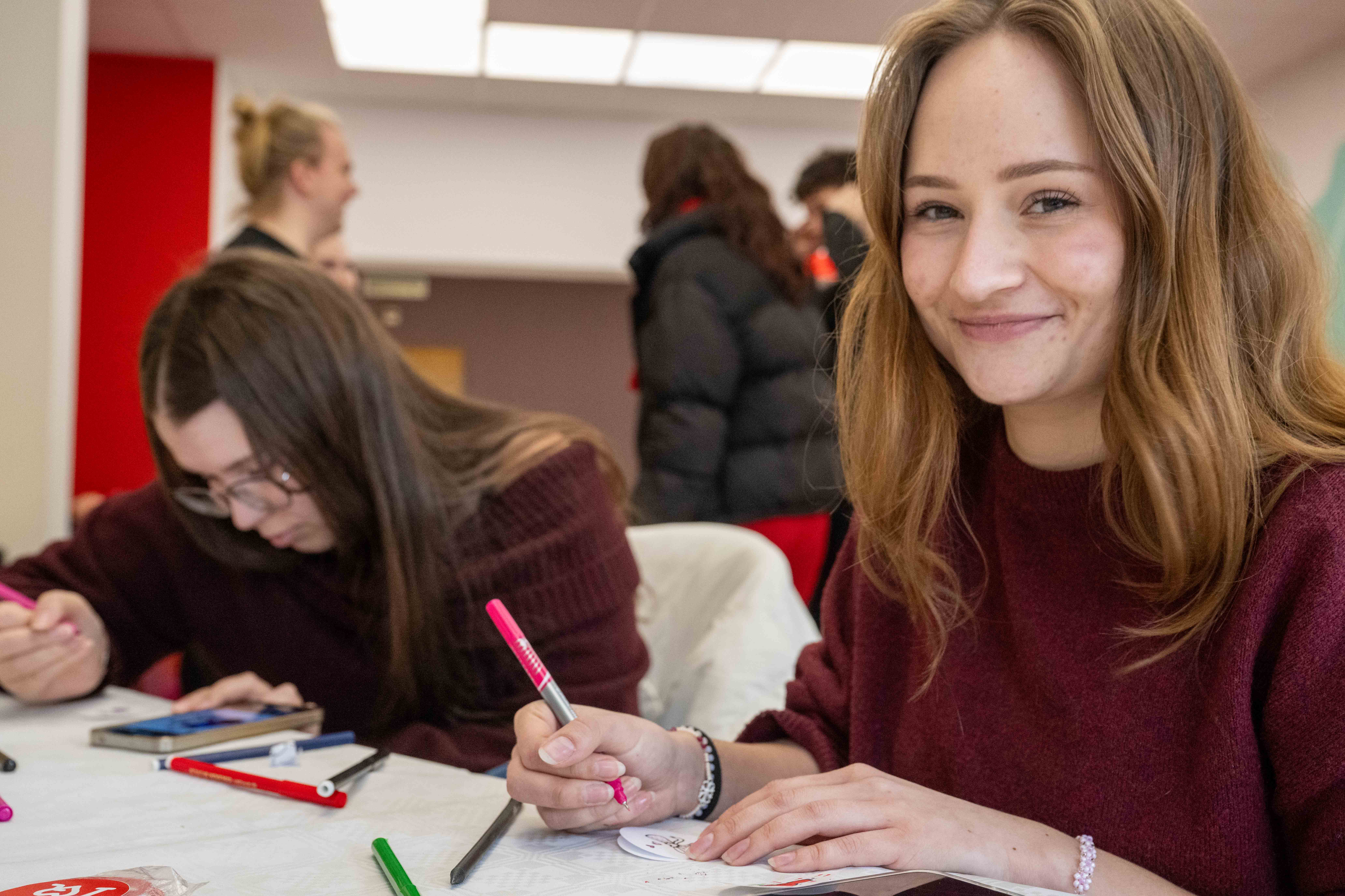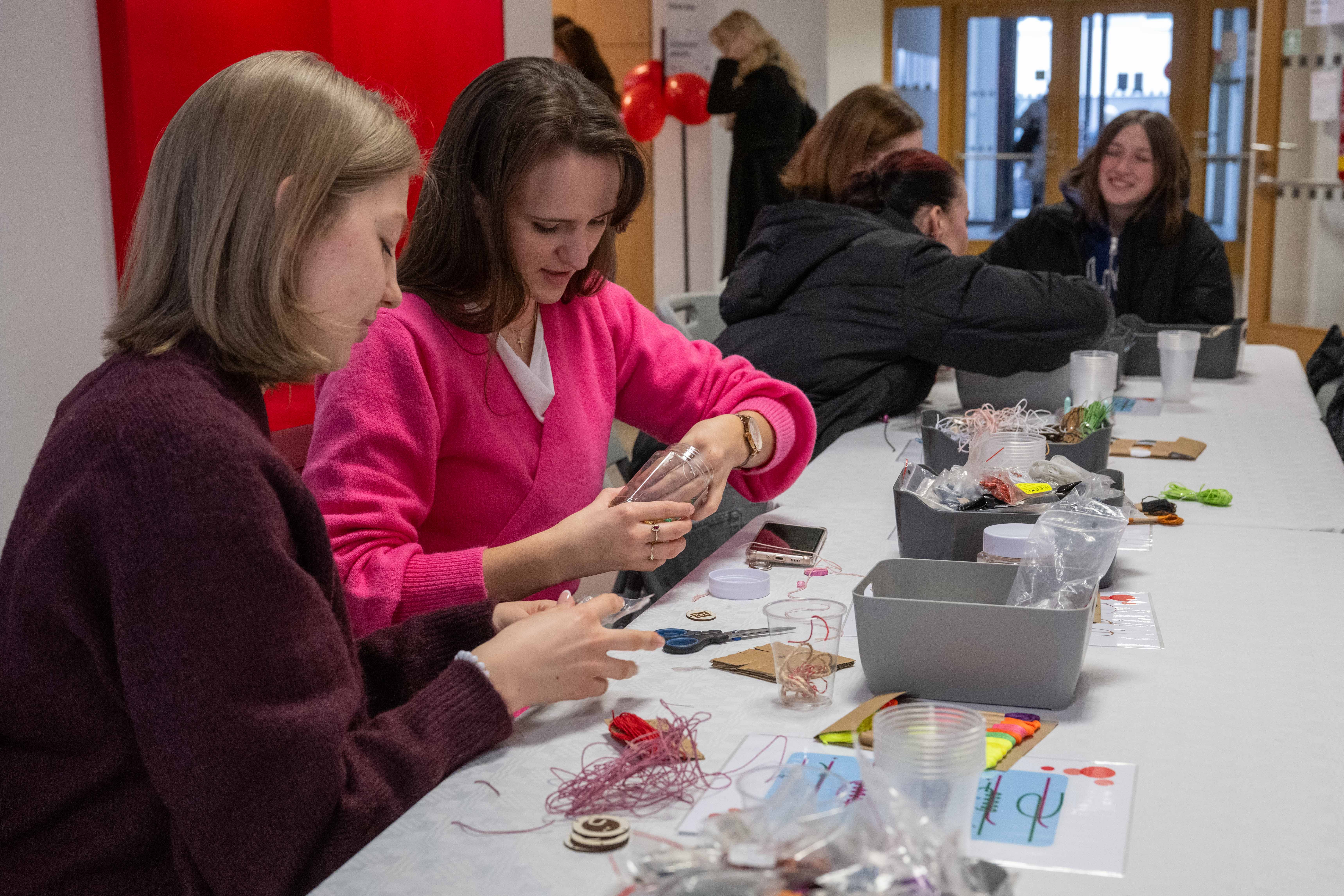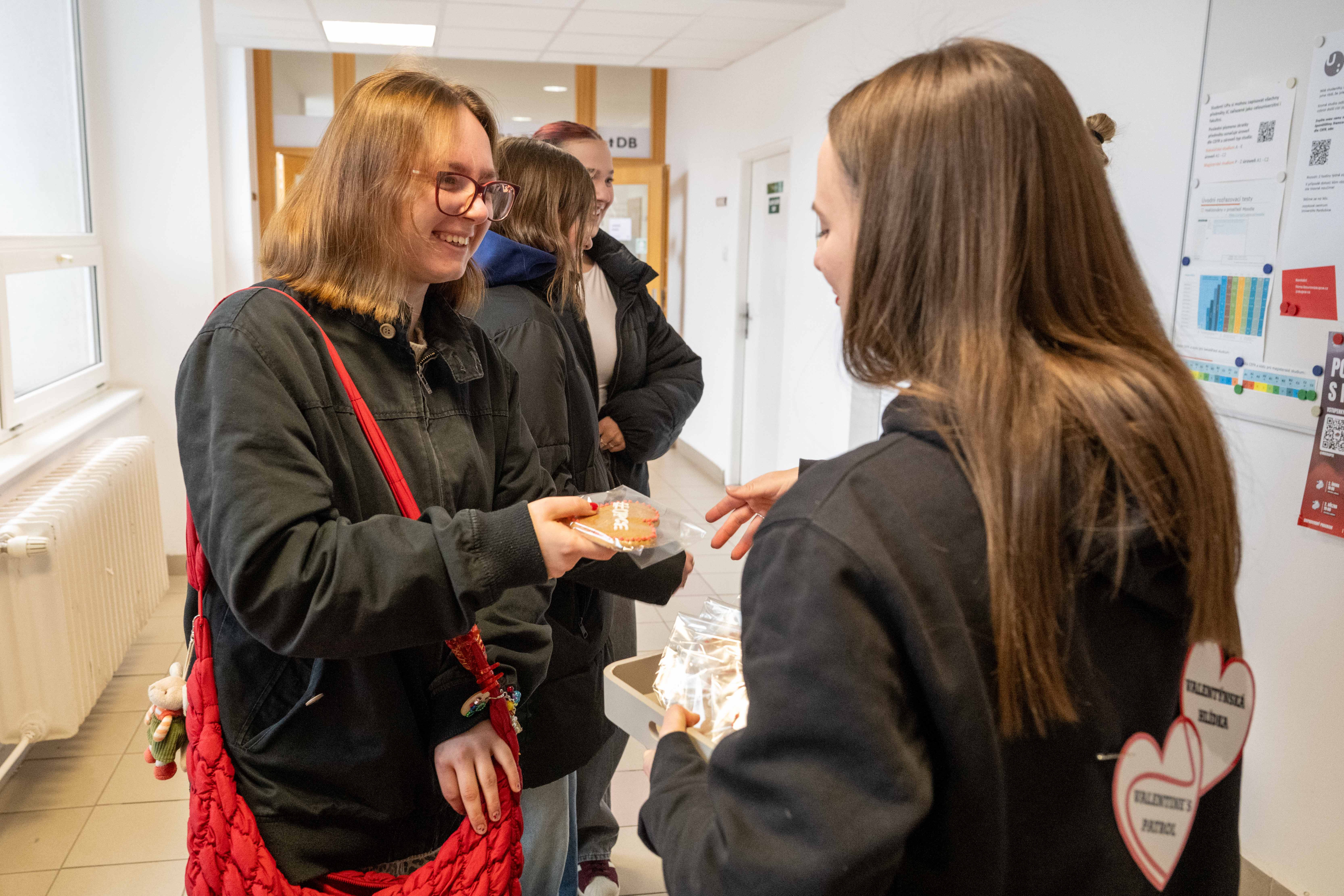Kreativní duše s námi v pondělí 16. února tvořily originální vouchery pro své blízké, placky a náramky. Hezkou vzpomínku si studující i zaměstnaní odnesli v podobě polaroidové fotky či "tetování" hennou. Valentýnská hlídka obdarovala perníčkem studující, kteří přišli v červeném.